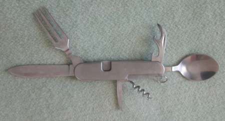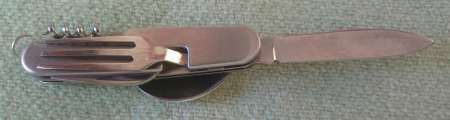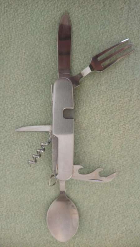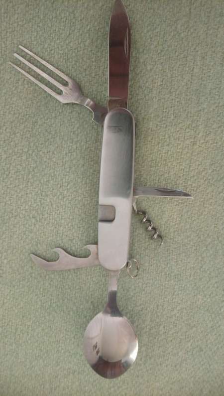 Cuillère/Fourchette/Décapsuleur/Tire bouchon plus deux lames de couteau de 3 cm et 6 cm !
