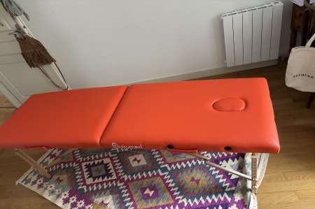 Je vous propose un moment de relaxation, je masse sur une table de massage.